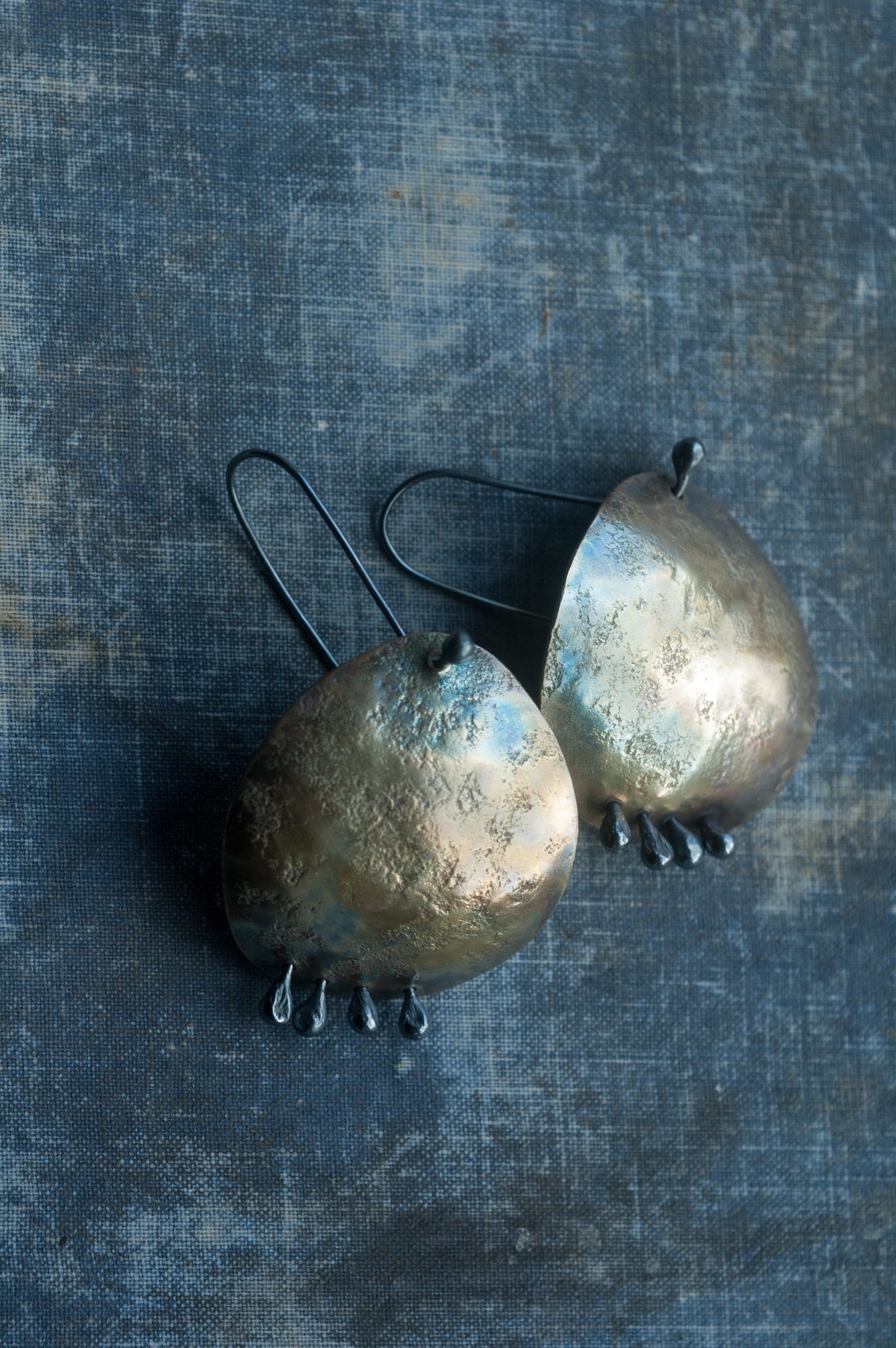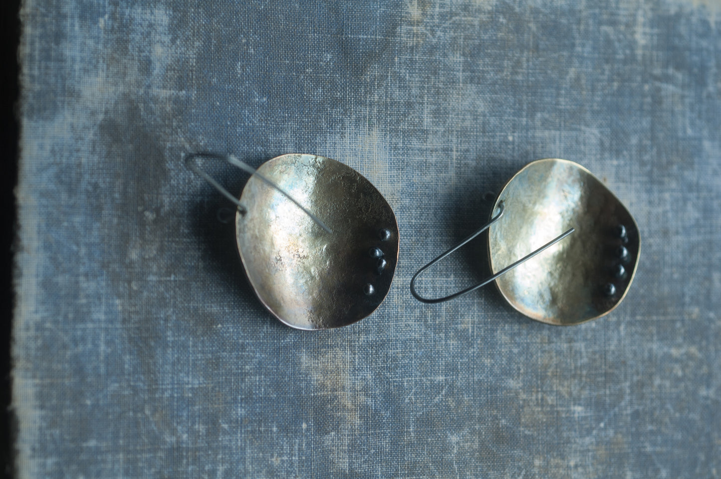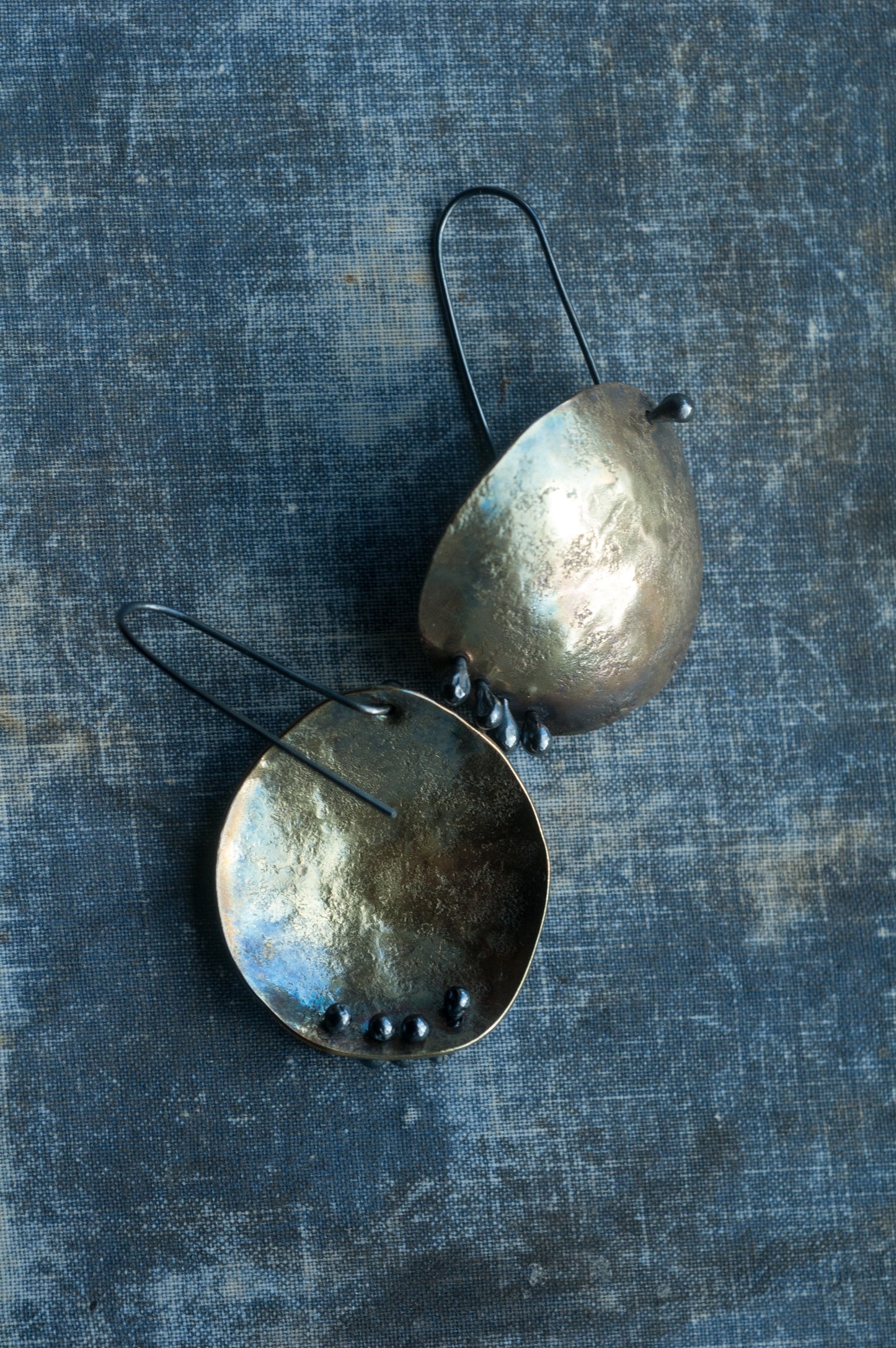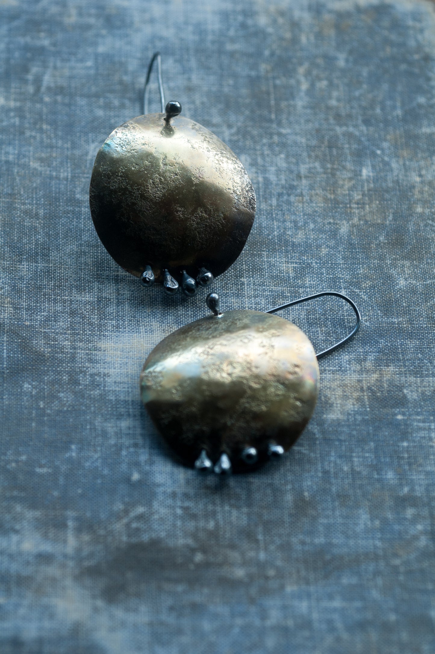 •The rich patina creates varied earthy hues- each pair is unique. Polished for a low mysterious lustre.